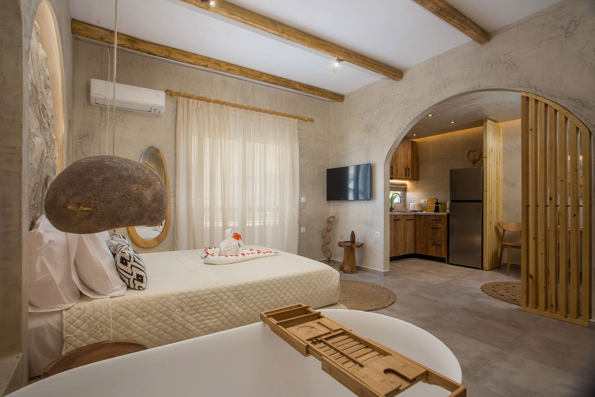 The Artistic Suite with Balcony is a celebration of creativity, comfort, and individuality. Designed with unique artistic touches and natural materials, this suite embodies the spirit of the island — where art and tranquility come together in perfect harmony.